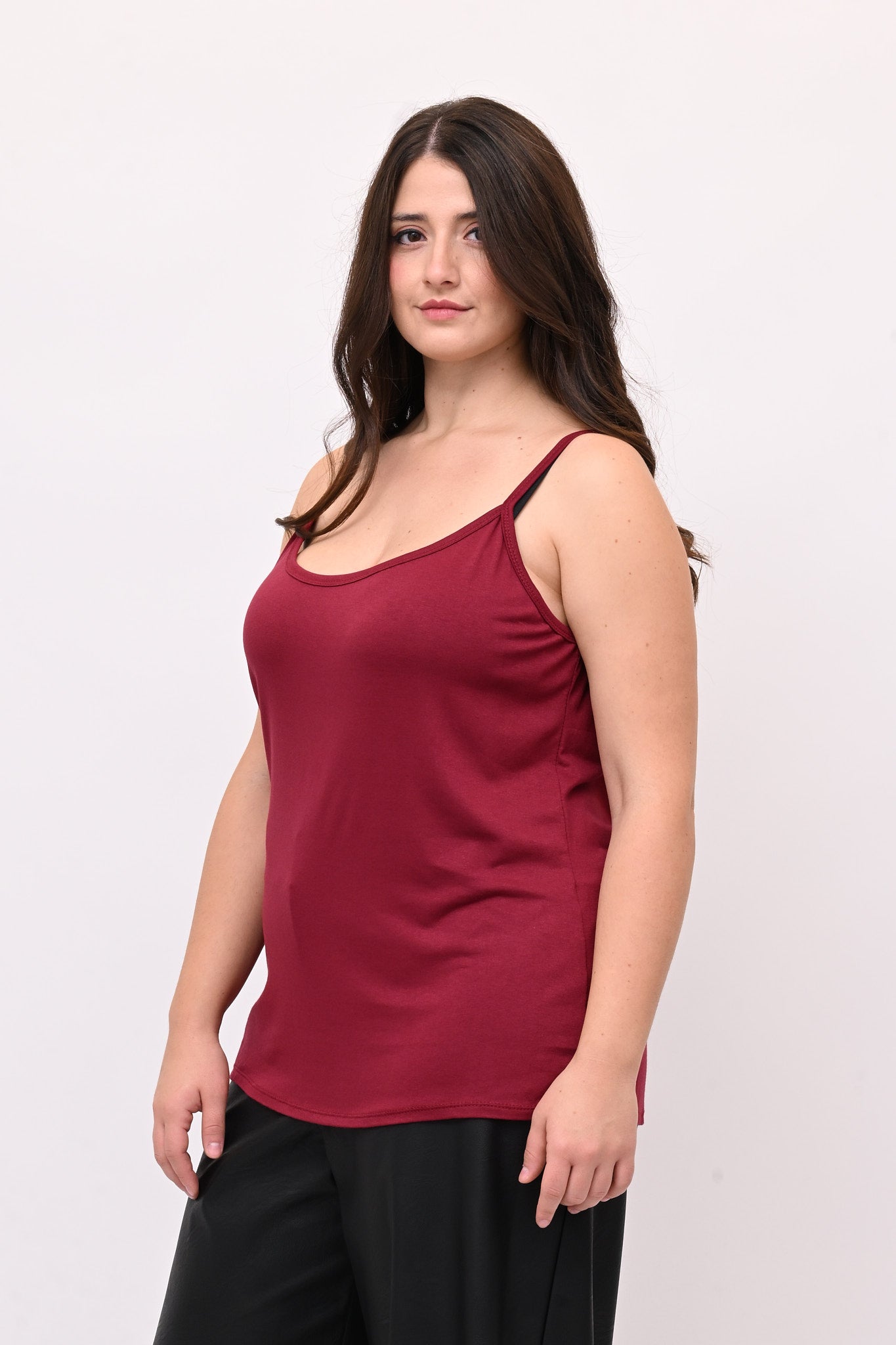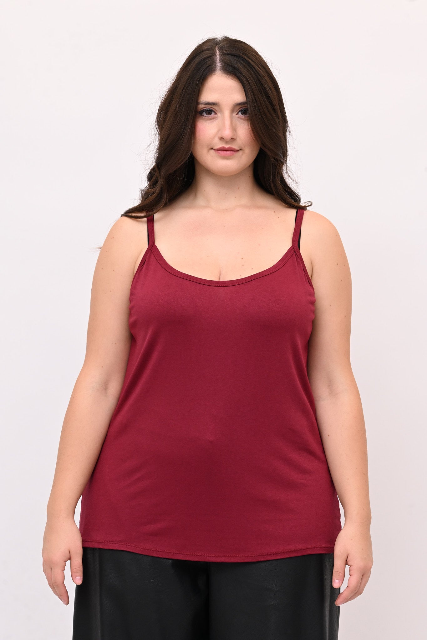 Canotta in maglina di viscosa elasticizzata, spallina fina, girocollo. Ideale come capo sottotutto, da abbinare a qualsiasi outfit. La vestibilità è comoda e garantisce comfort e libertà di movimento: un must-have indispensabile e femminile.