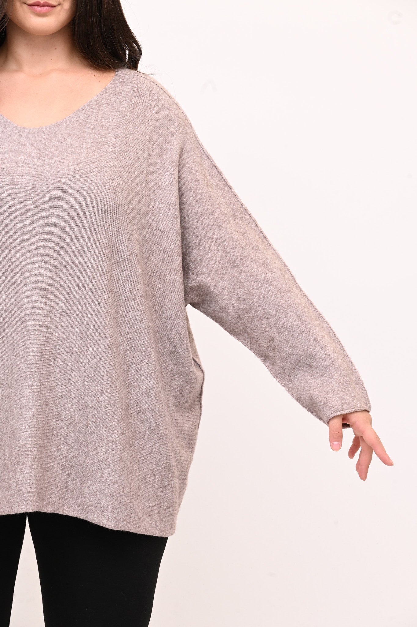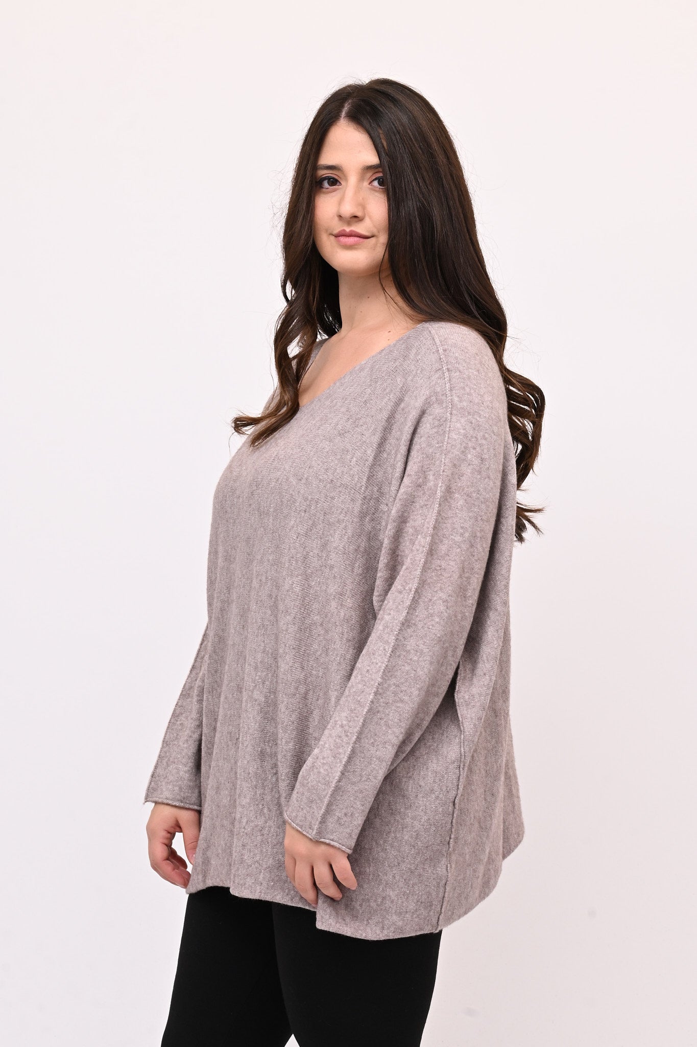 Pull in calda viscosa, modello a scatoletta, scollo a V. La vestibilità rilassata garantisce libertà di movimento. Perfetto per chi cerca un capo versatile e confortevole, ideale da abbinare a look casual e sofisticati.