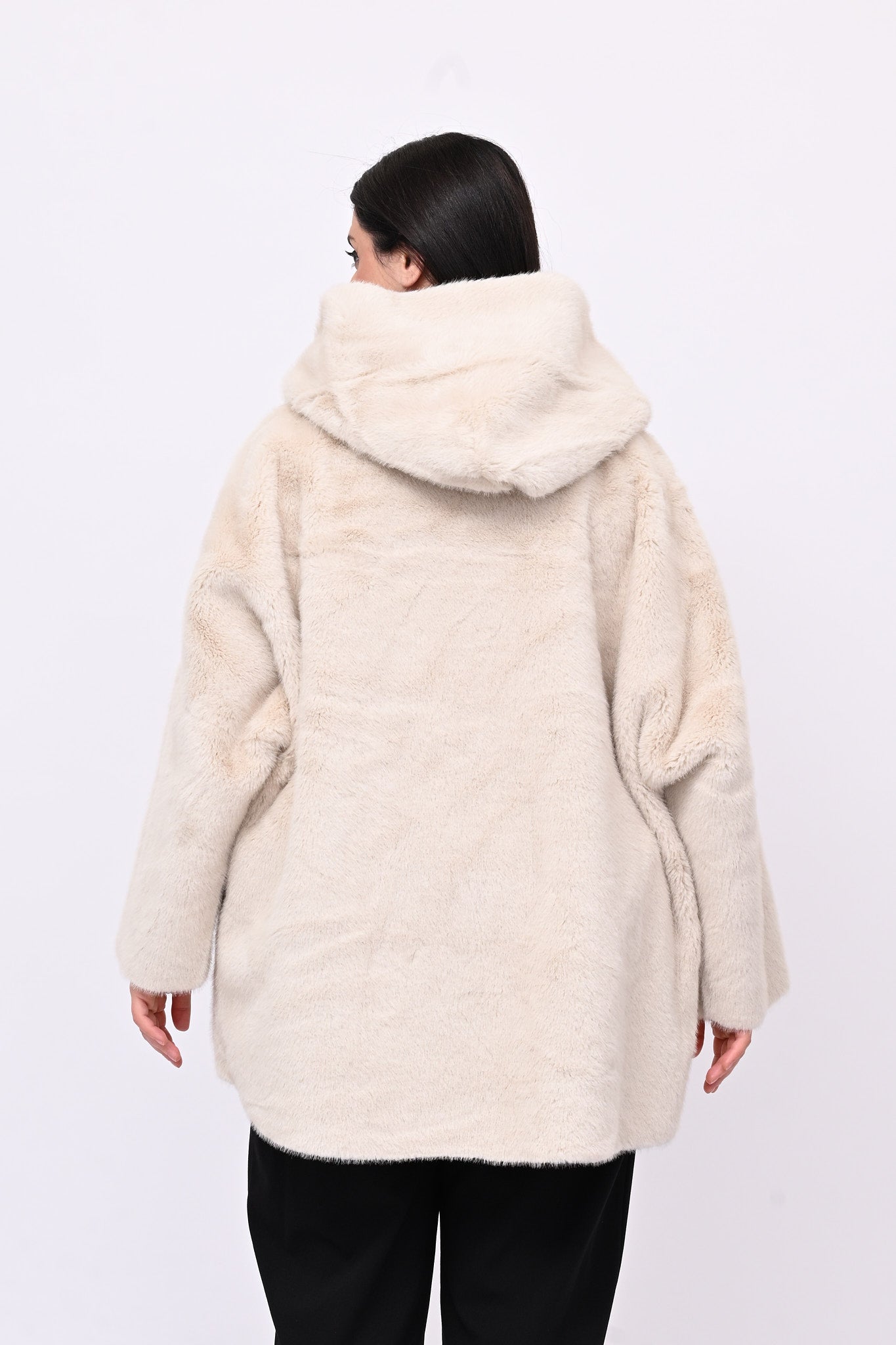 Eco pelliccia double face cappuccio - Burro