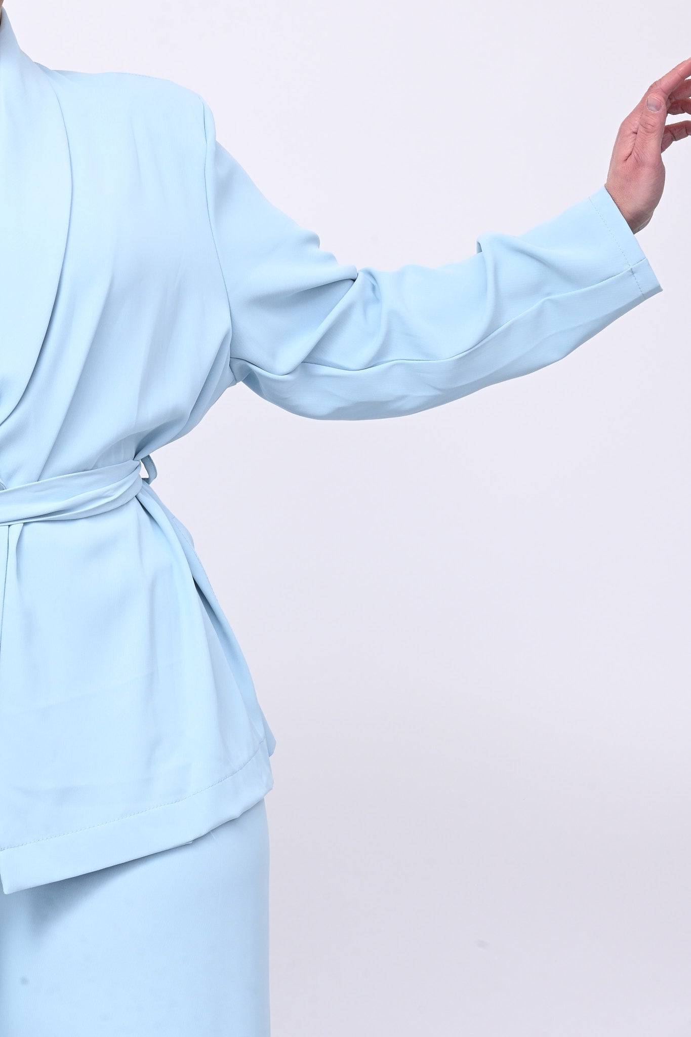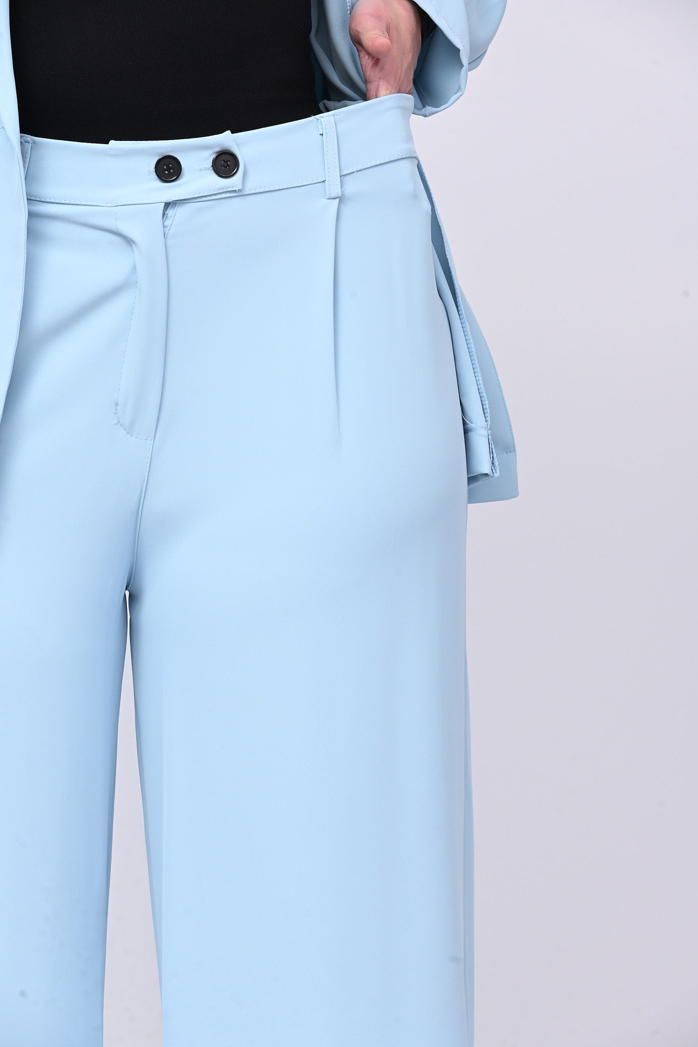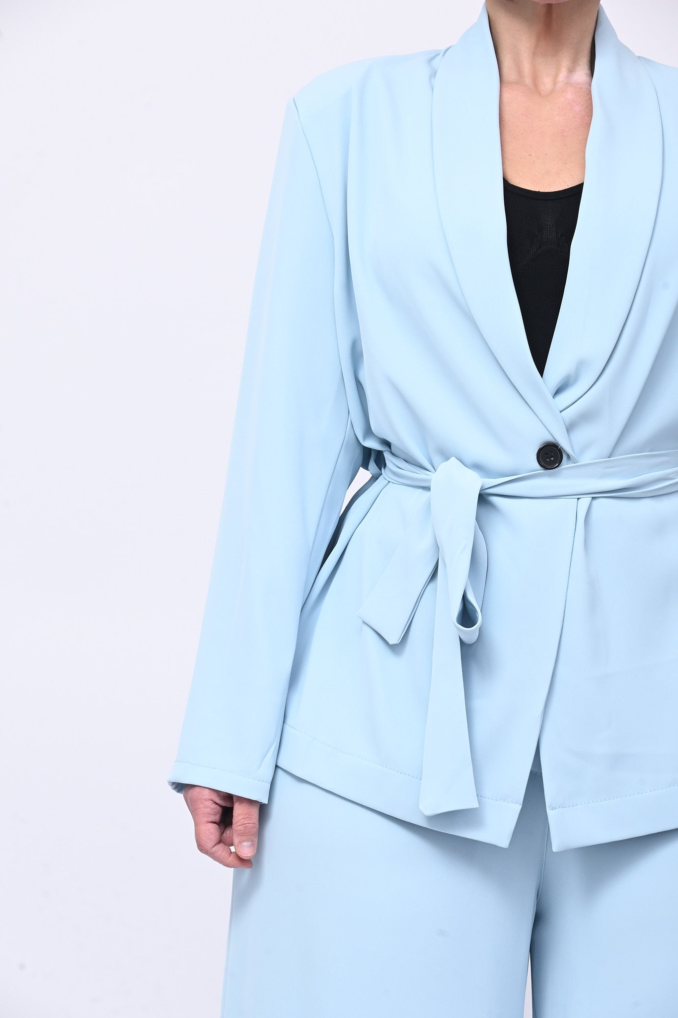 Tailleur in cadì, composto da: giacca monobottone, con rever, spalline e cinta in vita. Il pantalone è modello palazzo, con elastico in vita. La vestibilità del completo è morbida e scivolata e garantisce massima comodità ed eleganza contemporanea. Ideale per look easy chic raffinati e di tendenza.