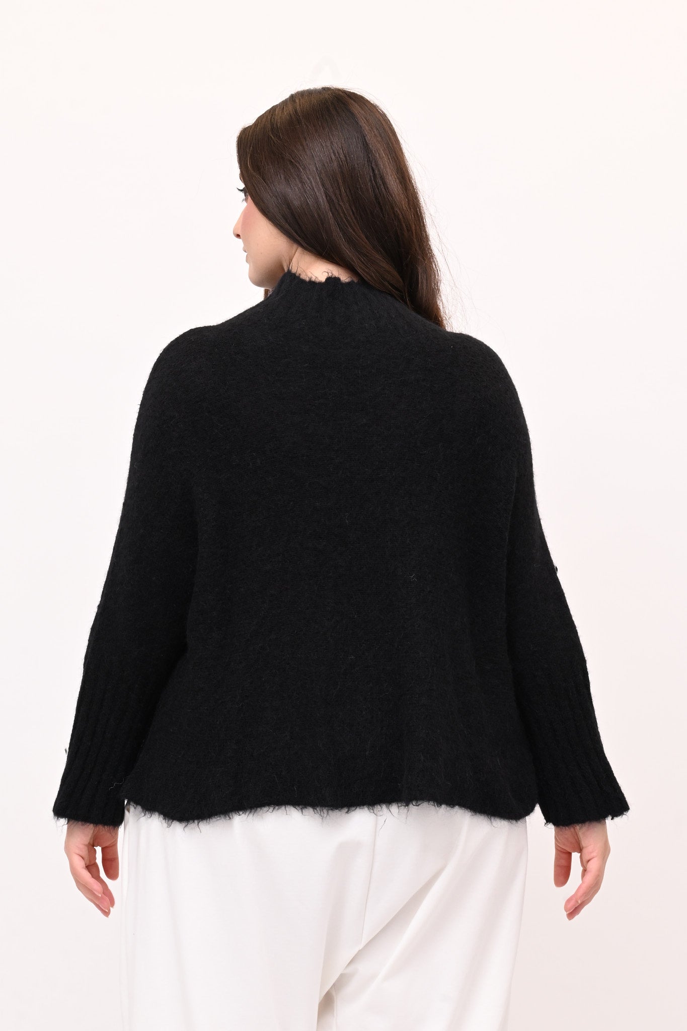 Maglia mohair manica coste lupetto - Nero